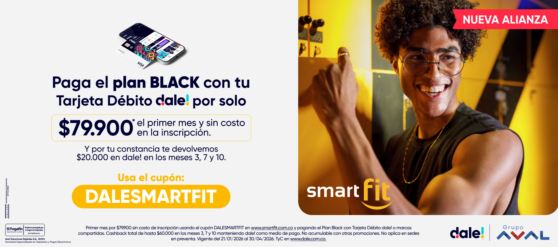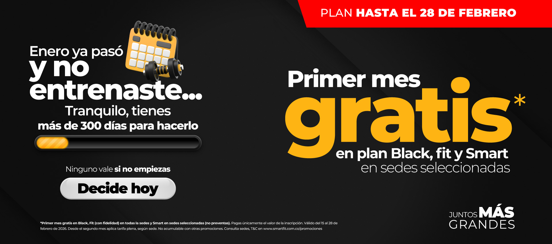 $0, durante la primera (1) mensualidad de los planes Black, Fit o Smart. Aplica en sedes seleccionadas.